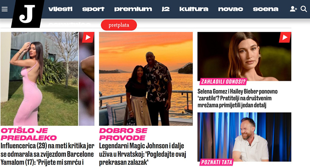 Slika 9. Naslovna stranica novinskog portala Jutarnji list, izabrani članci iz rubrike Scena, 20. lipnja 2025.