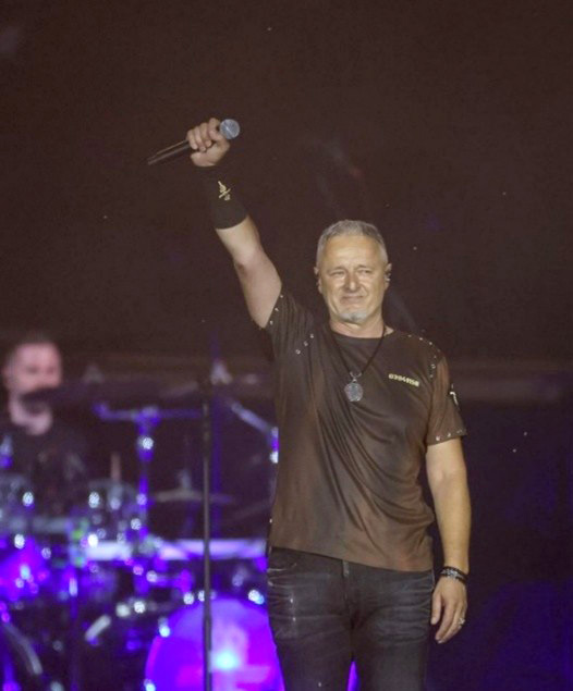 Slika 17. Fotografija Thompsona s koncerta na Hipodromu 5. srpnja 2025. godine. Pjevač podiže ruku uvis u trijumfalnoj gesti, čime se vizualno produbljuje mitološki, tabloidni narativ o njemu kao o herojskoj, gotovo mesijanskoj figuri (Showbuzz: Dnevnik, 2025).
