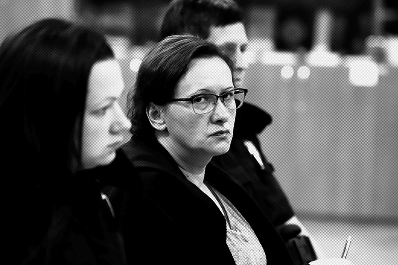 Detalji se donose i u kasnijim člancima: 22. veljače 2019. Index objavljuje članak naslovljen Novi detalji: Jasmina nije bila gola nego u ogrtaču. Policija obavila pretres. Time se postiže insajderski ton ekskluzivnosti, poprilično učinkovit u zadržavanju čitateljske pažnje na pojedinačnom slučaju koji se prati poput detektivske serije. Istovremeno, Srnec postaje novi predmet medijske opsesije i demonizacije, nalik fascinaciji kakva se na Zapadu razvila oko poznatih ubojica kao što su Aileen Wurnous ili Ted Bundy. U novinskim su tekstovima priložene brojne fotografije snimljene tijekom suđenja, fokusirane na njezino lice, najčešće hladno i bezizražajno (v. Slika 19). U Jutarnjem listu zbog toga je 18. siječnja 2021. nazivaju “ledenom Smiljanom”. Uz to, kako bi se uvela naglašena emocionalna komponenta u cijeli novinski narativ, na popratnim fotografijama uz članke često su prikazivani članovi njezine obitelji. Primjerice, u spomenutom članku iz Jutarnjeg lista prilažu se fotografije njezine kćeri i zeta, koji su i prvi pronašli tijelo u zamrzivaču, snimljene tijekom pogreba Jasmine Dominić, čime se zadire u obiteljsku intimu.