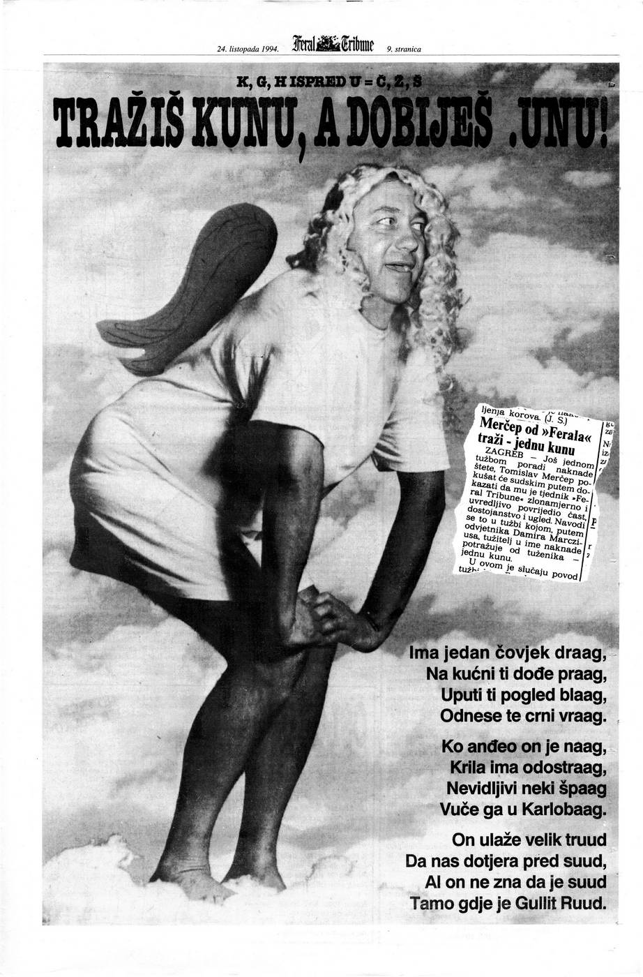 Gomilanje geminacija slova za vokale u rimovanim završecima domaćih riječi čiji zapisi završavaju s <ag>, a potom i onih čiji zapisi završavaju s <ud> (uključujući nizozemsko ime Ruud) nemaju svrhu upućivati na kakav osobit izgovor (u suprotnome moglo bi se govoriti o fonostilemu, podržanom zapisom), već prvenstveno pismovno aludirati na imenicu Haag, pa i na od strane tadašnje hrvatske vlasti i osumnjičenih za ratne zločine omražen Haški sud. (Ta je „grafoaluzija“ podržana i poravnatošću završetaka stihovnih linija uz desnu marginu, čime se zapisi ovih riječi još snažnije ističu i tvore ekvivalencijsku figuru zapisa.)