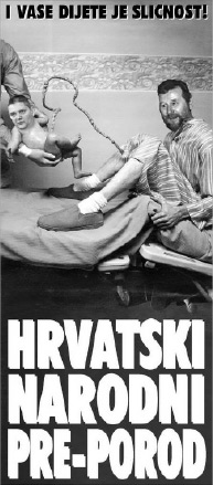 I druge ključne riječi hrvatske nacionalne ideologije potkopavaju se u Feralu ovakvim figurama. Primjerice u naslovu <DA LI HR-AČKATE?> adicijom spojnice fingira se etimološka ili značenjska veza između imenice Hrvatska i pejorativnog glagola hračkati, a sličan blasfemičan učinak u vezi sa sintagmom Hrvatski narodni preporod ima potpis <HRVATSKI NARODNI PRE-POROD> uz fotomontažu na kojoj Vladimir Šeks porađa Antu Đapića.