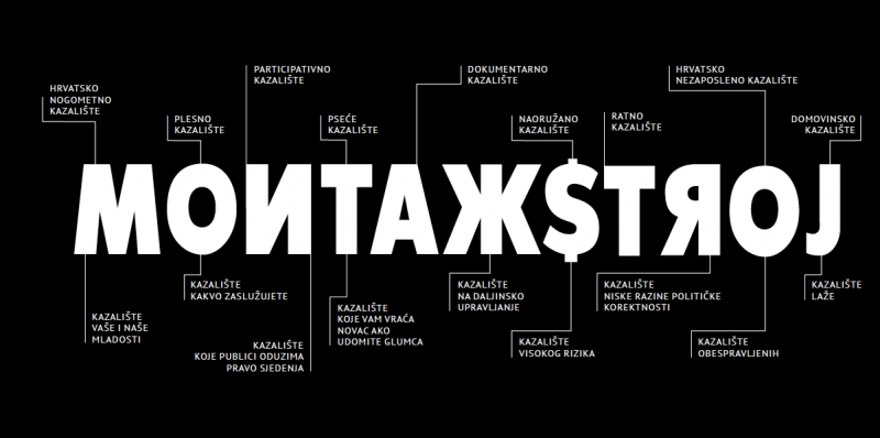 4 Pseudotransliteracijom nazivamo figuru srodnu transliteracijskoj figuri, koja je zapravo mnogo češća od nje, pa donekle iznenađuje to što u Feralu nije uočena. Postupci su to zamjenjivanja slova iz domaćeg pisma slovima tuđeg pisma na temelju sličnosti po obliku. Radi se zapravo o fingiranju transliteracije. U zapadnom kulturnom krugu vrlo su česti primjeri uporabe ćiriličnih umjesto latiničnih slova kojima se bilježe posve drukčiji glasovi nego u originalnom jeziku pisma. Takvim se pismovnim igrama (u logotipovima i drugim zapisima povezanim s glazbom, filmom, kazalištem i dr.) uglavnom nastoji evocirati štogod karakteristično za SSSR, Rusiju, europski istok i sl. Potonje je slučaj u poznatom logotipu Montažstroja, „jedinstvenog hrvatskog kulturnog projekta koji objedinjuje različite umjetničke discipline i medijsku kulturu na društveno odgovoran način“ (cit. prema njihovoj web-stranici), u kojemu se ćirilična slova <И> i <Я> rabe za bilježenje glasova [n] i [r] – v. primjer 9