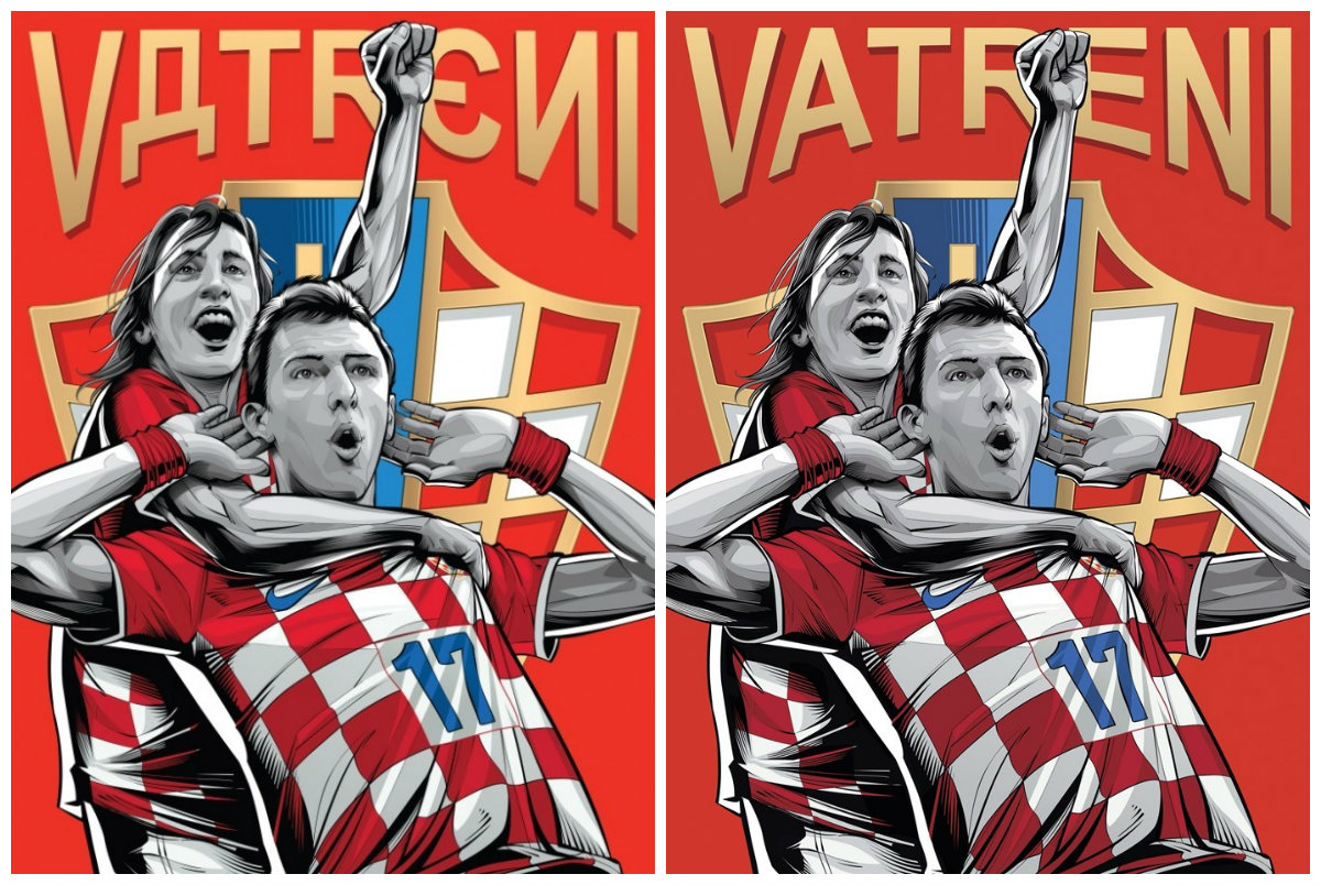 Kao kuriozitet spomenimo da je nedavno u hrvatskoj sredini jedna bizarna pseudotransliteracija izazvala podosta negodovanja (pa i s političkim nabojem). Naime na prvoj verziji plakata koji je američka medijska kuća ESPN objavila povodom Svjetskog nogometnog prvenstva u Brazilu 2014. nadimak je hrvatske nogometne reprezentacije zapisan kao <VДTREИI>. Taktika pseudotransliteracijskih zamjena latiničkih slova <A> i <N> ćiriličnim <Д> i <И> (pa i tipografski specifičnog, zaobljenog <E> koje evocira ćirilično <З>) u ovom je slučaju, dakako, bila sasvim krivo usmjerena, pa se nakon nekog vremena plakat preradio tako da natpis i njegova tipografija ne pobuđuju nikakve asocijacije na ćirilicu (v. primjer 10).