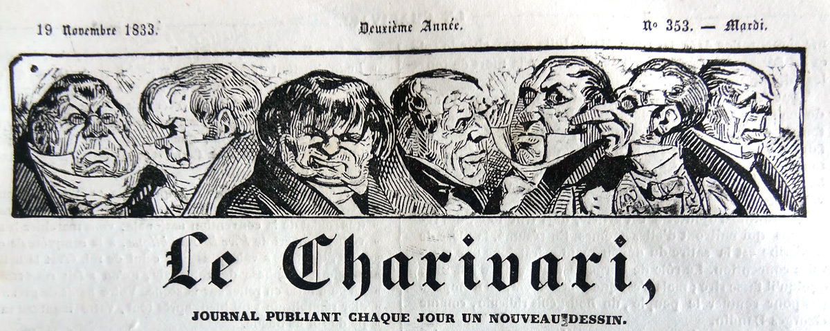 H. Daumier, Karikaturni portreti suvremenih političara, 1833. (Iliti, kontekstualizirano, 2002: tajkundžije, korupčije, nadzordžije, pretrglije ter ini, njima »pljunuto« nalik... Ima in još, al’ sam trtadžija, pa nesmin in zazva’)