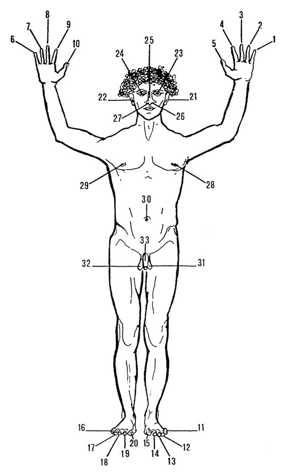 | Broj | Riječ | Značenje (dio tijela) |